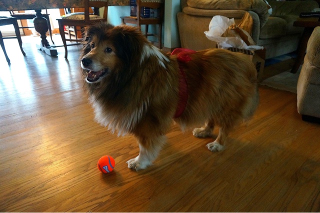 おまけの写真。クリスマスのキバちゃん。ラッピングの時も、プレゼント開ける時もキバが1番ワクワクしてたよ。